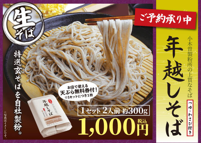 いつも小木曽製粉所をご利用いただきまして、ありがとうございます。 今年も12月31日の大晦日に販売致します『小木曽製粉所の年越しそば』 今年一年の締めくくりに、『小木曽製粉所の年越しそば』はいかがでしょうか。 ご予約お待ちしております。 【ご予約方法 】 ※当日『年越しそば』を受け取る店舗にご注文下…続きを読む