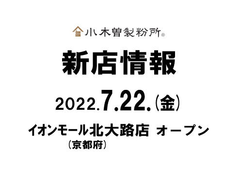 いつも小木曽製粉所をご利用いただきまして、誠にありがとうございます。 2022年7月22日に、京都府初出店となる 【信州そば 小木曽製粉所 イオンモール北大路店】 がオープン致しました。 ◆営業時間 10:00~21:00 ◆TEL:070-9030-5331 ◆住所:〒603-8142 …続きを読む
