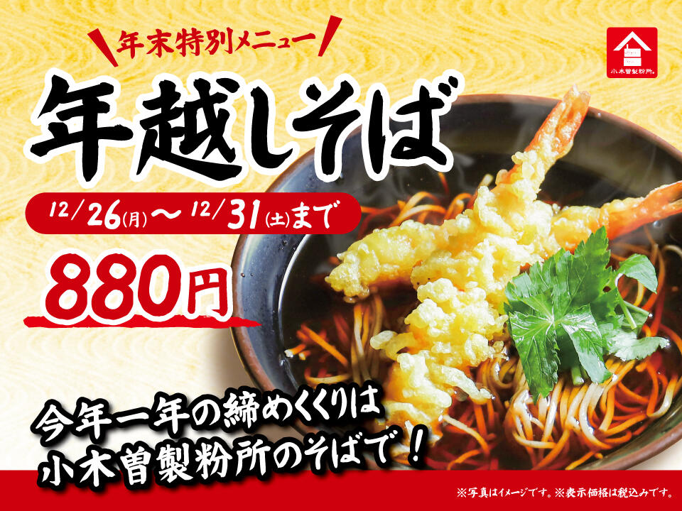 いつも小木曽製粉所をご利用いただきまして、ありがとうございます。 今年も12月31日の大晦日に販売致します『小木曽製粉所の年越しそば』 今年一年の締めくくりに、『小木曽製粉所の年越しそば』はいかがでしょうか。 ご予約お待ちしております。 【ご予約方法 】 ※当日『年越しそば』を受け取る店舗にご注文下…続きを読む
