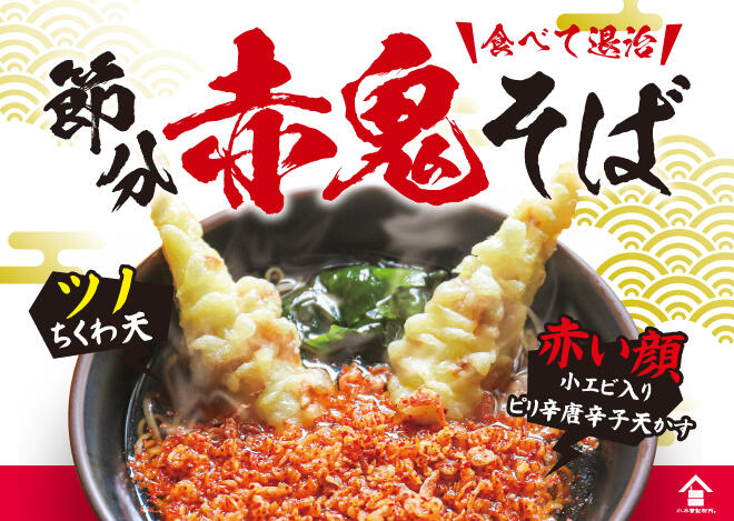\1週間限定!節分赤鬼そば!/ 赤鬼の顔をイメージして 「ちくわのツノ」と「小エビ入りの唐辛子天かす」を盛り付けした ピリ辛!温かけそばメニュー! 唐辛子天かすは、辛いだけでなく小エビの香ばしさも楽しめます!また、甘味のある唐辛子が、つゆとの相性◎ 短い期間での限定メニューとなっております。 この機…続きを読む